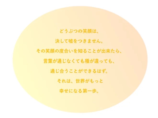 こうした取り組みを通じてどうぶつの笑顔が増えていくことで、人も一緒に笑顔になる世界、人とどうぶつが共に幸せになる未来を目指しています。