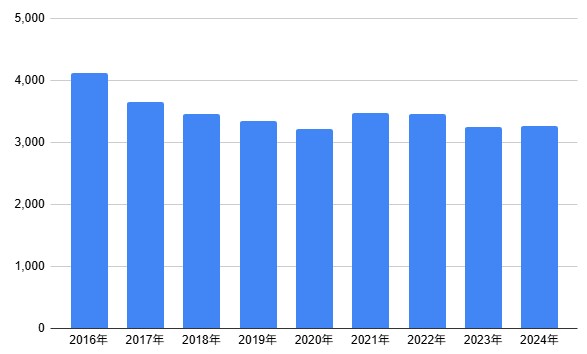 映画「マスク」が公開された直後に日本に初登場した時点が飼育頭数のピークとなり、その後は飼育頭数は一定数で前後しています。