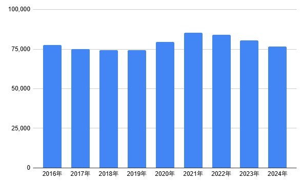 2021年をピークに減少傾向ですが、他の犬種と比較しても圧倒的な人気を誇っています。
