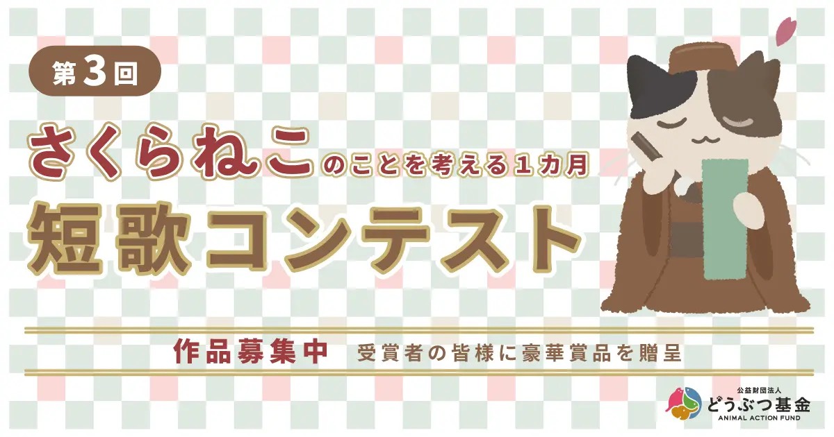 猫の殺処分ゼロを目指す公益法人が開催する「第3回 さくらねこ短歌コンテスト」1月15日より作品募集開始